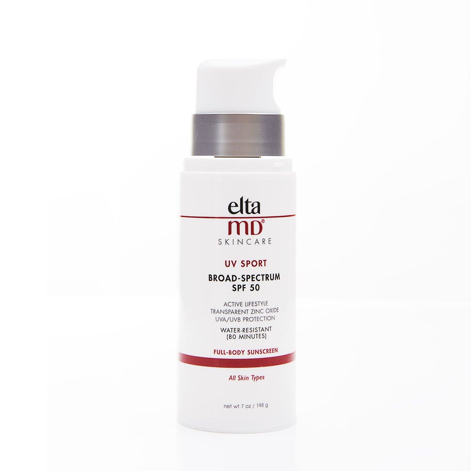 EltaMD® UV Sport Broad-Spectrum SPF 50 sunscreen is specially formulated for active lifestyles. It is a water-resistant (80 minutes) sunscreen that will not rinse off in water or drip into the eyes and sting. EltaMD UV Sport delivers broad-spectrum protection against UVA (aging) and UVB (burning) rays. Ideal for use by outdoor athletes and children, it is safe for all skin types.