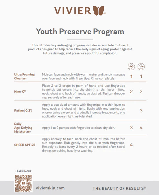 This introductory anti-aging program includes a complete routine of products designed to help reduce the early signs of aging, protect against future damage, and preserve a youthful complexion.